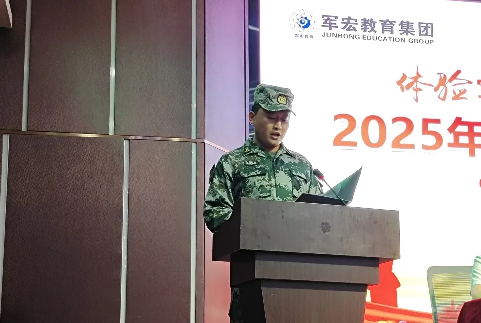 军训教官苏升代表全体教官表态,将以严谨的态度、规范的动作带领同学们完成军训任务,同时也希望同学们能发扬不怕苦、不怕累的精神,展现军宏学子的良好风貌。