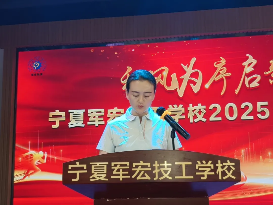 最后,他以铿锵之语收尾:“教育是一场‘接力赛’,愿我们携手并肩,以奋斗之笔书写宁夏军宏技工学校更辉煌的明天!”