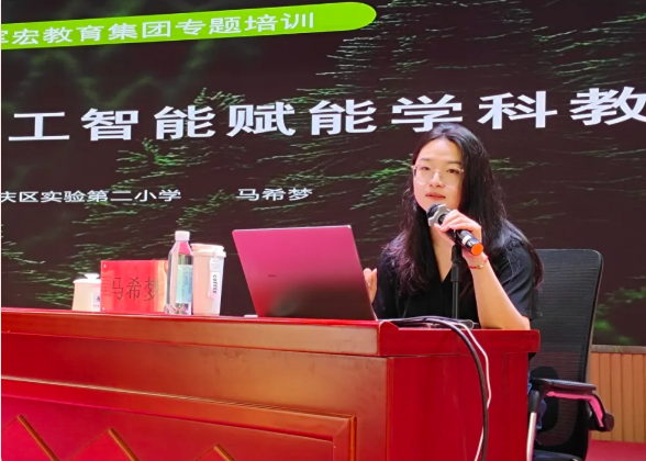 “当教育遇上AI,不是替代,而是共生。”自治区骨干教师马希梦老师作为特邀讲师,以《人工智能赋能学科教育》为题开展宣讲,为我校全体教师打开教育新视野。她梳理了AI发展从“规则驱动”到“生成式智能”的演进脉络,并讲述了多款适配学科教学的AI工具。她呼吁:“主动拥抱技术不是选择题,而是必答题——让我们以开放心态探索‘AI+教育’的无限可能。”