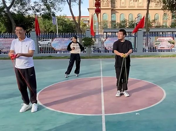 老师跳绳时的节奏不输学生,投篮时的专注模样更是引得学生拍照,当老师投进一个球时,学生们的欢呼声比自己赢了还开心,赛场变成了师生互动的欢乐海洋。