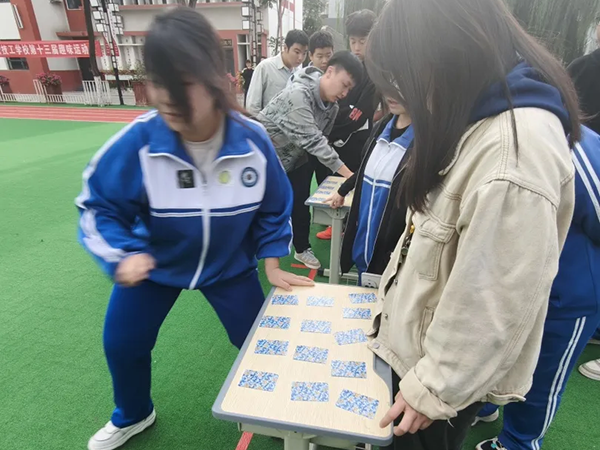 翻牌思维大比拼更是“脑力+体力”的双重考验。学生们排成纵队,跑到牌区时眼神专注,翻到错牌便迅速归位,转身跑回的瞬间还不忘和下一位队友小声叮嘱“再找1!”,当有人翻到正确顺序的牌时,全场都会响起小声的欢呼,这种“一人努力,全队牵挂”的氛围,格外暖心。