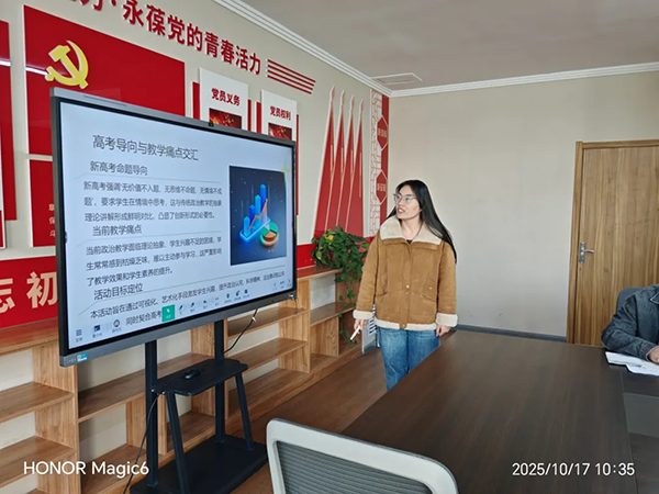政治教研组:张凯欣老师介绍了以“图解政治,艺述初心”为主题的活动方案,创新采用“可视化、艺术化”的创作形式,将抽象的政治理论转化为具象、生动的视觉作品。这种方式能变学生被动接受为主动探索,有效激发学习内驱力,同时提升高考应试能力与政治学科综合素养。