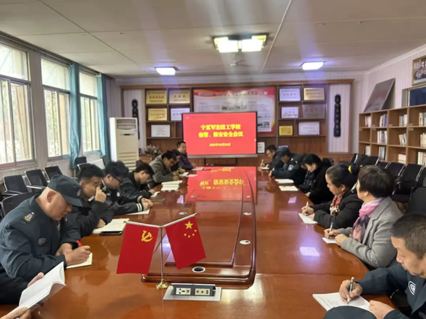 为进一步压实校园安全管理责任,提升安全服务保障质量,作为校园安全的守护者,保安、宿管责任重大。为提升安保人员安全意识及业务水平,宁夏军宏技工学校于2025年10月25日上午8点30分组织召开了安保和学生处安全工作推进会议。本次会议由学生处副主任李苗主持,主管校园安全副校长田向阳、学生处主任王洪飞、资助中心主任张栋出席会议并讲话。
