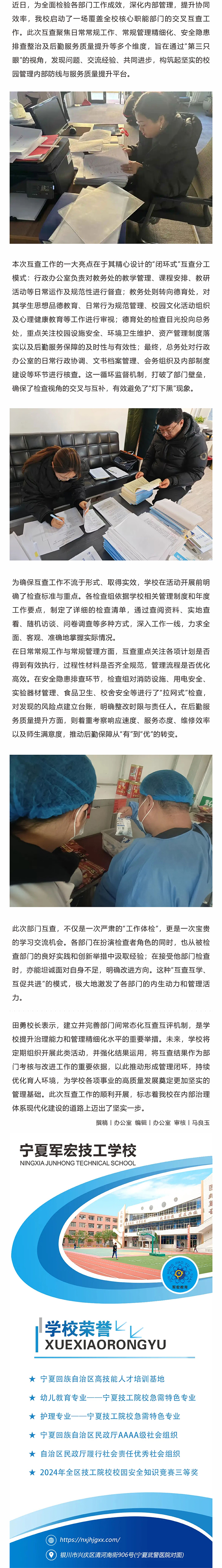 宁夏军宏技工学校——创新开展部门互查工作 构建闭环管理机制促提升